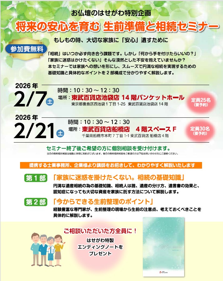 お仏壇のはせがわ 相続セミナー情報
