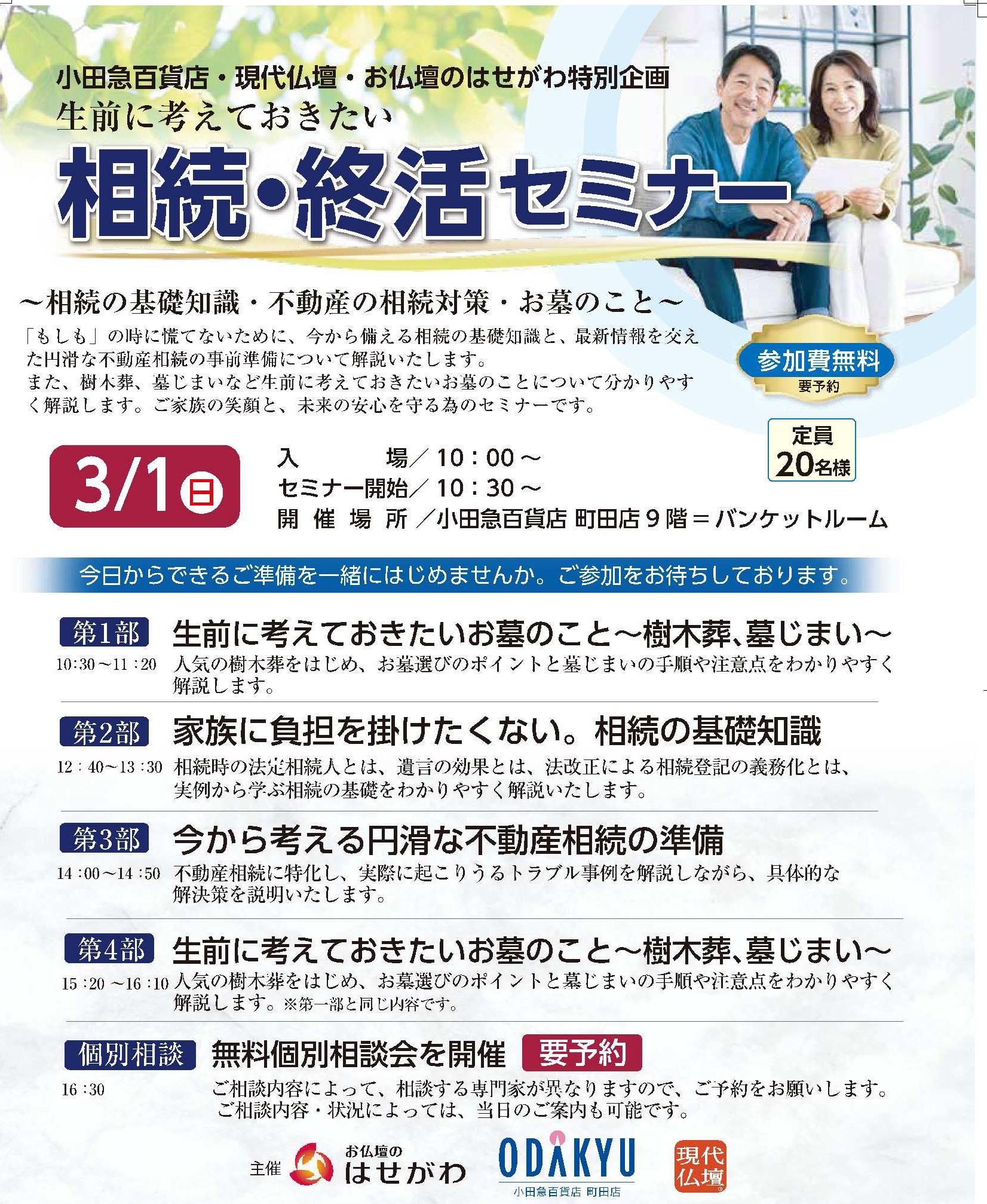 3月1日は小田急百貨店様と相続、終活セミナーを開催します。